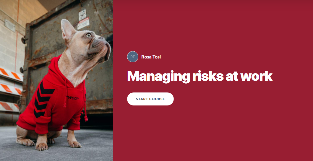 I didn’t follow my usual process which would include an action map, because this time I didn’t have access to a client directly to solve a company’s problem, I was asked to develop a non company-specific course as a starting point for business owners to get more acquainted with the subject of managing risks at the workplace and make it engaging. I was asked to use the website provided and to expand on the subject as I deemed appropriate using other trustworthy sources as well, and that’s what I did.